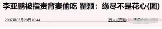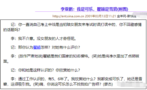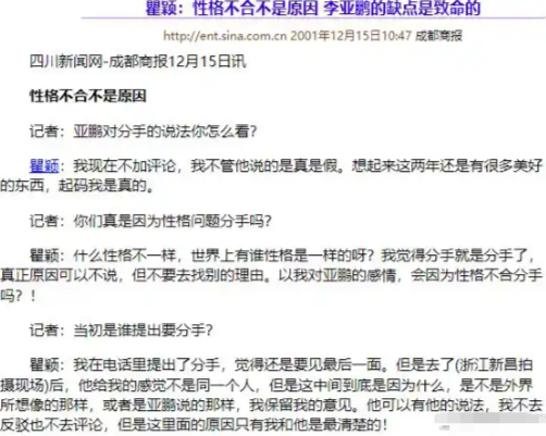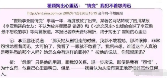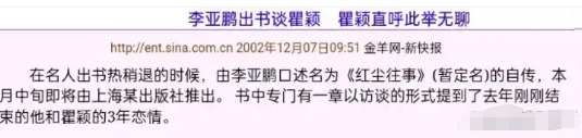 有意思的是,分手是李亚鹏提的,但他好像更放不下,还在书里写了这一段经历,瞿颖虽然是被分手,倒是不再提起,直接说李亚鹏无聊。