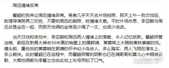 但去了后,李亚鹏冷淡,周迅的情绪也不对了,拍戏与李亚鹏明显有些生疏。