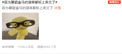 盒马借机营销,给菠菜都打上了英文标签。