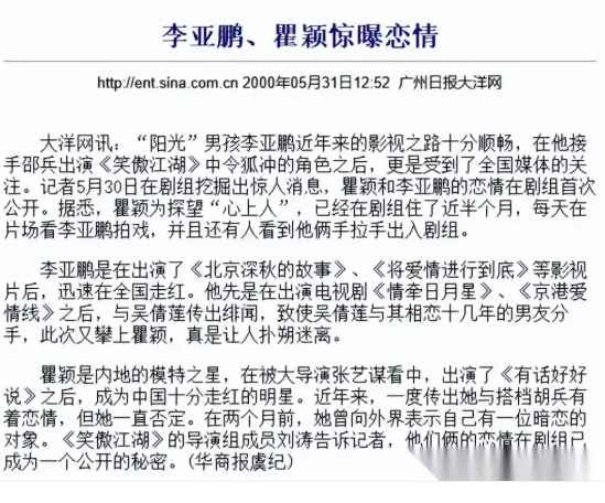 夏天,瞿颖还专门去探班,以李亚鹏女友的身份接受了采访,两人都没有避讳。