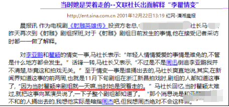 关于分手,有人说是因为李亚鹏插足。